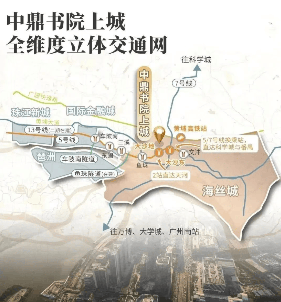 中鼎书院上城·珺翎府位于广州市黄埔区,紧邻地铁5号线大沙地站约600米,步行即可到达。这一优越的地理位置不仅提供了便捷的城市通勤体验,还让居民享受到了丰富的周边生活资源。通过地铁5号线,可直达珠江新城、金融城等核心商业区,而北边的广园快速和南边的黄埔大道则为驾车出行提供了便利。