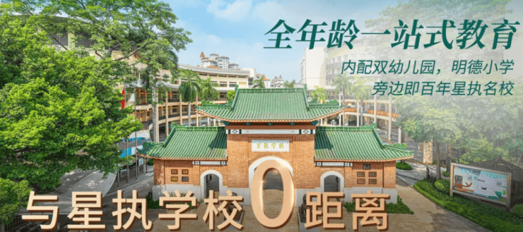 小区内已配建明德广地实验学校及两所公立幼儿园,对口小学为南村汇贤小学,初中为南村侨联中学。此外,附近还有省一级民办星执学校,家长可根据教育理念和孩子需求灵活选择。