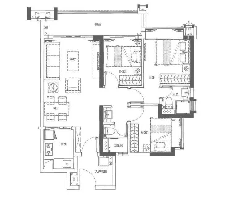 建面约96㎡ 动静分区三房