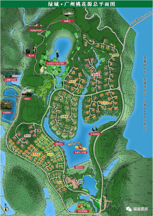 基本信息 地址:广州市花都区山前旅游大道中心区域,雄踞花都城市中轴线上风上水之宝地,北倚王子山脉巍峨龙脉,南望芙蓉嶂碧波万顷,西拥千亩原生果林,东接4A级旅游度假区,是广州北部唯一集“山地、湖泊、森林、高尔夫”四维生态于一体的顶级别墅群落。 占地面积:项目总占地面积宏大壮阔,累计用地约1000亩。其中,核心别墅居住区占地410余亩,每一寸土地都经过精挑细选,依势而建;另有专属水面、广阔绿地以及极具私密性的迷你小九洞高尔夫练习球场用地计500余亩。这1000亩的浩瀚疆域,并非简单的数字堆砌,而是一幅徐徐展开的山水长卷,为166栋独栋别墅提供了足以安放灵魂的广阔天地,让每一位居者都能在山海之间找到属于自己的精神原乡。 建筑面积:首期规划仅设166栋纯独栋别墅,摒弃了高层住宅的拥挤与喧嚣,坚持低密度的纯粹居住理念。建筑体量适度,确保每栋别墅都能拥有独立的采光面、通风口以及私属的庭院空间。这里没有密密麻麻的楼群遮挡视线,只有错落有致的建筑点缀在青山绿水间,仿佛是从土地里自然生长出来的艺术珍品,实现了建筑与自然的完美共生。 绿化率:项目坐拥得天独厚的生态基底,常年负离子浓度高达6000个/mm³,是广州城区的10至20倍,PM2.5值从未超标,空气质量常年位居广州十区之首。园区内不仅保留了300亩山地公园的原生植被,更通过精心规划的园林景观,将绿化融入生活的每一个细节。从私属登山绿道到千亩果林,从波光粼粼的水面到郁郁葱葱的高尔夫球场,绿意无处不在,呼吸之间皆是自然的馈赠,真正做到了“推窗见绿,出门入园,归家即度假”。 装修标准:绿城·广州桃花源秉承“以人为本”的人文主义价值观,对建筑品质有着近乎偏执的追求。所有别墅外墙均选用高档天然石材装饰,历经风雨而愈发温润厚重,彰显出岁月的质感与家族的传承;所有门窗均采用双层中空玻璃铝木复合材质,既保证了优异的隔音隔热性能,又赋予了立面典雅的欧式风情;所有花园围墙皆为实体围墙,确保了居者的绝对私密与安全。尤为珍贵的是,第一期花园均按精装修标准交付,由专业团队量身打造,将景观意向延伸至室内,让室外山水与室内生活产生“如影随形”的互动,满足了高端客户对个性化、尊贵感及归属感的极致追求。