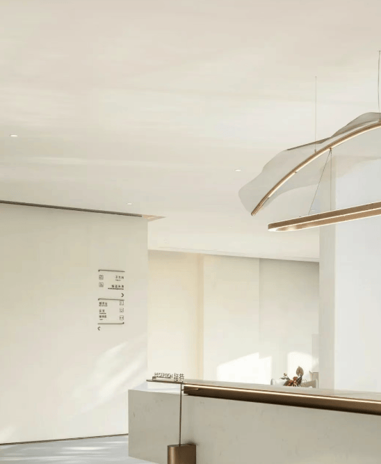 在空间营造上,顺控珑悦湾会所的设计展现了极高的艺术水准与人文关怀。步入大堂,一股素色淡雅的静谧气息扑面而来,整体空间以低饱和的米白、浅灰等柔和色系为基底,彻底摒弃多余的繁杂装饰与冗余线条,仅以利落干净的直线与舒缓的弧线勾勒空间轮廓,尽显极简美学质感。地面铺设整块温润的素色天然石材,纹理细腻自然,与墙面的浅色调形成柔和呼应,搭配质感细腻的素色软装陈设,没有夸张的色彩堆砌,没有刻意的造型修饰,每一处细节都追求纯粹本真。空间内巧妙预留的留白设计,让光线得以自由穿梭,既拉伸了空间的通透感,又彰显雅致内敛的东方韵味,瞬间消解了城市的喧嚣与浮躁,让每一位踏入大堂的家人,沉浸在这份简洁纯粹、静谧舒适的体验中。