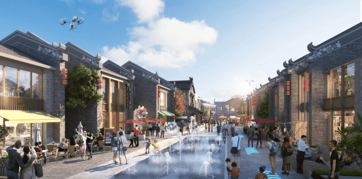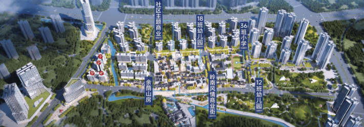 首先是项目自身的商业配套,开发商星河控股集团发家于深圳,商业地产是其强项,旗下拥有Coco park等知名商业品牌,有着丰富的商业运营经验。项目自主配置了5万㎡的商业开发,同时与余荫山房联合开发了具有当地岭南建筑特色的商业街,整体风格类似于广州知名的永庆坊,将岭南文化与现代商业完美融合,打造出独具特色的商业街区。