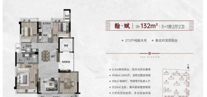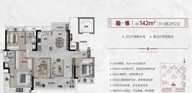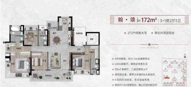户型设计亮点满满。132㎡的 3 + 1 房 2 卫,南北对流双阳台,南面约 6.9 米全屏观景阳台,采光通风一流。142㎡的 3 + 1 房 2 卫,4 开间朝南,约 14.4 米全面屏采光,约 28㎡酒店套房主卧,舒适又大气。172㎡的 3 + 1 房 3 卫,南向奢阔双主套,4 开间朝南约 17.5 米全面屏采光,270° 环幕大视野,居住体验超棒。而且都是 2T2 户纯板楼,实用率达 101% 以上。