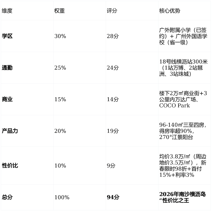 二、中观价值:越秀江海潮鸣的“全能型住宅价值评分表”