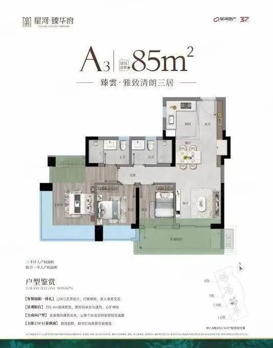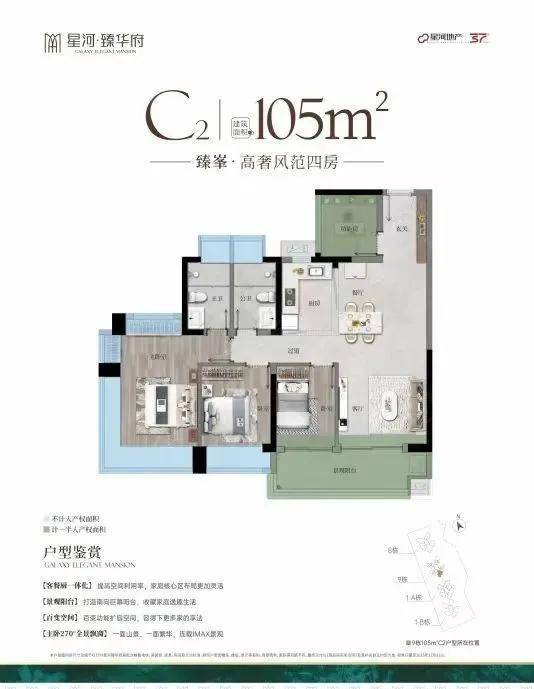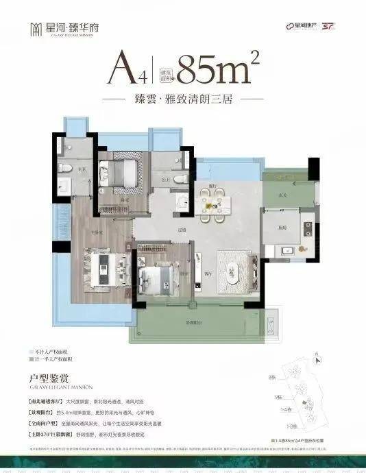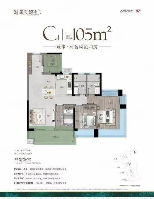 目前,星河臻华府推出了建面约为85-125平方米的三到四房户型。所有户型均采用了新规产品设计,使用率接近100%,主卧配备270°飘窗,极大地提升了居住舒适度和空间利用率。