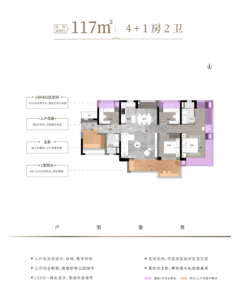 作为改善型爆款户型,这款户型采用LDKB一体化设计,打造超大方厅,实现客厅、餐厅、厨房、阳台的无缝衔接,家庭互动空间更充足。4+1房的灵活配置极具竞争力,可根据需求增设书房、健身区、儿童游乐区等功能空间,让每个家庭成员都能拥有独立的活动区域。空间尺度舒展,采光通风俱佳,无论是日常居住还是宴请宾客,都能彰显品质与格调。