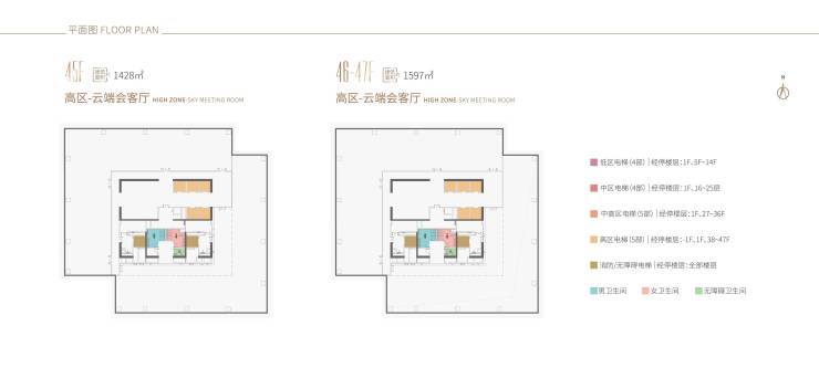 项目分东塔和西塔,东塔建筑面积约 11.31 万㎡,楼高 212 米,地下 2 层,地上 47 层;西塔建筑面积约 10.01 万㎡,楼高 60 米,地下 2 层,地上 16 层,容积率<7.85。功能规划方面,1 - 3F(部分)为配套商业(约 0.4 万㎡);3 - 34F(部分)为自持写字楼;34(部分) - 36F 为可售写字楼;38 - 47F 为企业会客厅。