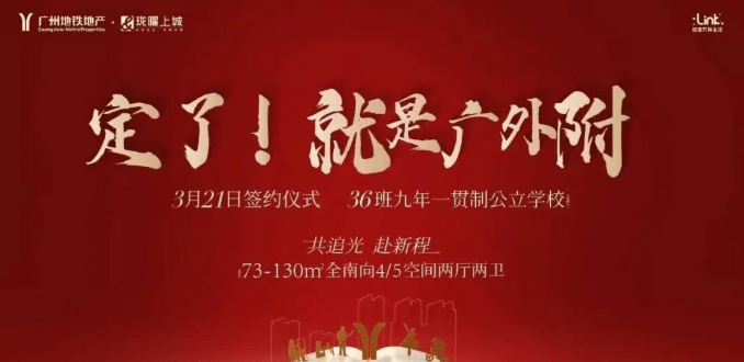 项目配建了幼儿园和广外附九年一贯制公立学校,业主子女可以实现目送式上学。该学校已与番禺区教育局、广东外语外贸大学签约,定名为广东外语外贸大学附属广州新城学校(暂定名),这无疑为项目的教育配套增添了巨大优势。