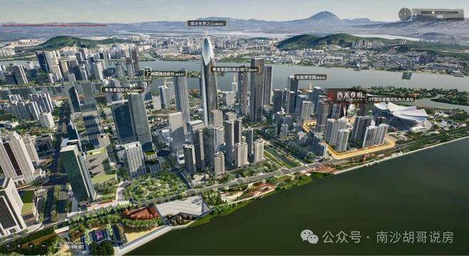 地理位置是西派尊府最大的核心卖点之一。它位于南沙明珠湾起步区的金融岛尖端,南向直面珠江,三江交汇的开阔江景尽收眼底。项目与国际金融论坛(IFF)永久会址仅一路之隔,直线距离大约50米,基本可以说是“贴邻”这个湾区级金融地标。周边已经聚集了多个重量级金融建筑,未来这里会被打造为对话世界的窗口,承载千亿级产业导入和高端人流。