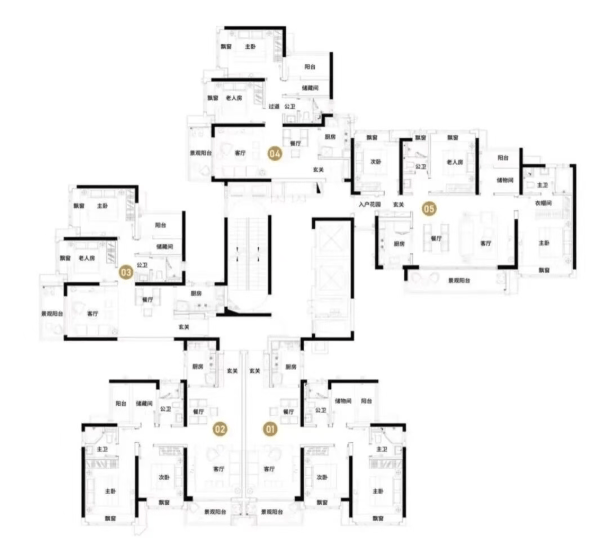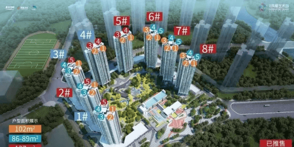 项目总建筑面积约18.3万㎡,规划8栋28-30层高层住宅,共1067户,得房率高达80%,远超市场平均水平。户型涵盖87㎡、89㎡、102㎡三房及124㎡-127㎡四房,满足从首置到改善的多元需求。主力楼栋如A5栋(主推107㎡、126㎡)、A4栋(102㎡、124㎡、125㎡)及6栋尾货(87㎡、102㎡、107㎡)等,均为2梯4户或2梯5户设计,兼顾效率与私密性。目前部分楼栋仍有优质房源在售,机会稍纵即逝。