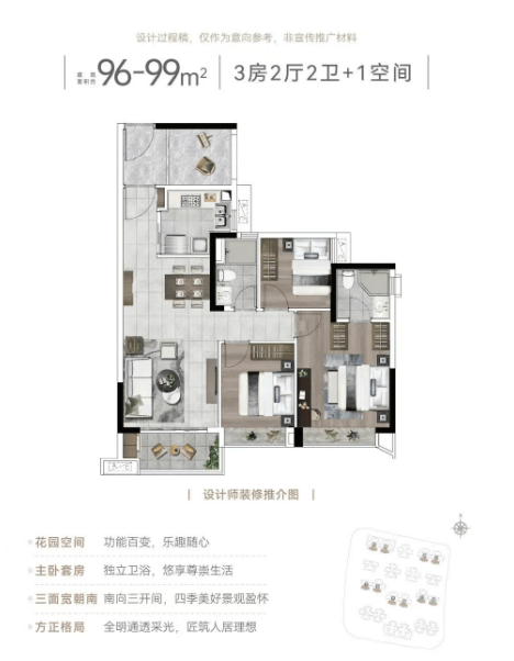 生态宜居: 依山而建,拥有稀缺的山景资源,居住环境优美。
