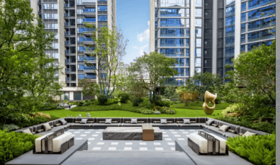 在社区规划层面,江湾和樾展现出了对居住舒适度的极致追求。项目总占地面积约6.3万平方米,总建筑面积21万平方米,容积率控制在3.43。在主城区寸土寸金的地段,这样的容积率意味着更多的空间被留给了绿化和公共设施,居住密度相对较低,能够有效避免拥挤感,营造出开阔舒适的居住环境。绿化率达到了31%,这意味着社区内超过三分之一的面积被植被覆盖。开发商精心设计了多层次的园林景观,选取了适合广州气候的乡土树种和花卉,打造了四季常青、花开不断的生态社区。春有樱花烂漫,夏有绿荫如盖,秋有丹桂飘香,冬有红梅傲雪,业主足不出户即可欣赏四季美景。