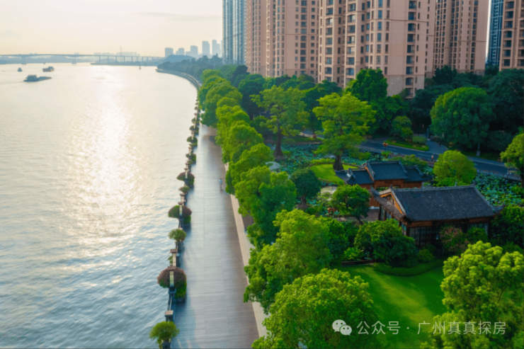 你可能看习惯了二沙岛、白鹅潭、滨江东、珠江新城的江景,但是站在半岛五号外的木栈道,会意外的发现,从这里可以从不同的角度看到广州沿江发展的轴线。