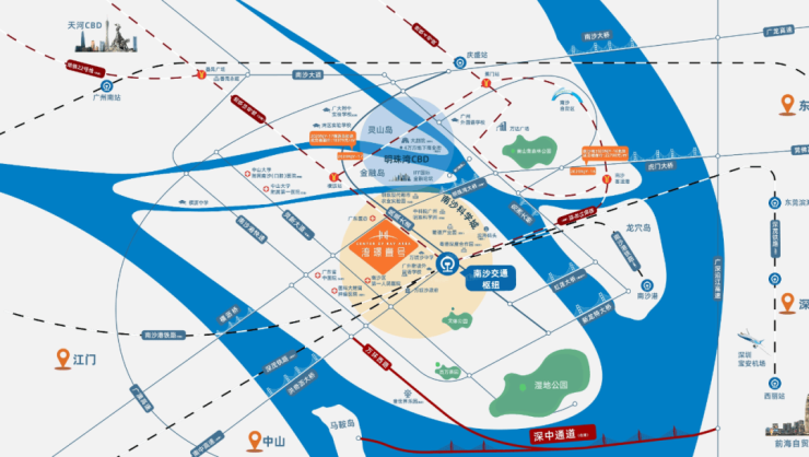 湾璟壹号紧邻广州地铁18号线万顷沙站,通过深中通道、明珠湾大桥等交通枢纽,快速连接至广州及其他珠三角城市。未来规划中的广深港磁悬浮列车将进一步缩短与深圳、香港等地的距离,使得通勤更加便捷。