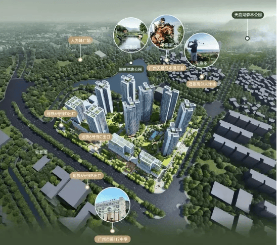 生态资源方面,项目周边被五大生态公园环绕,自然环境得天独厚。根据官方数据,项目周边5公里范围内有约600公顷的火炉山森林公园、约880公顷的广州东肺帽峰山/天鹿湖森林公园,还有梅花岭/尖峰岭公园、广州科学城体育公园等。此外,黄陂湿地公园紧邻项目,业主周末可前往露营、野餐,早晚可散步、跑步,丰富日常生活方式。值得一提的是,项目周边还有天麓马术俱乐部、冠景高尔夫球场等高端休闲配套,为业主提供多元化的休闲选择,提升生活品质。