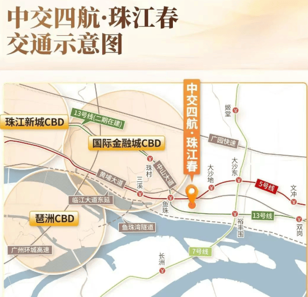 珠江春紧邻地铁鱼珠站,仅需一站即可抵达天河,无需换乘即可直达珠江新城。此外,临江大道东延段预计于2025年开通,鱼珠隧道也将在同年下半年完工,这些都将极大提升区域内的交通便利性。尤其是鱼珠隧道的开通,将使珠江春所在的鱼珠片区能够更好地承接琶洲的产业辐射和人才外溢。