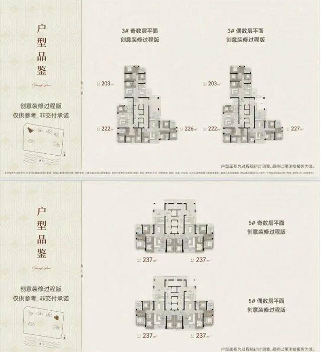 1. 203-241㎡三房/四房:改善入门款,高梯户比保障私密性