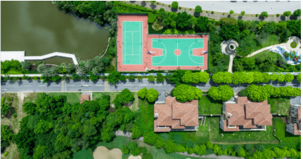 运动健身配套:社区内配备篮球场、网球场等专业运动场地,满足业主运动健身需求,打造健康活力的社区生活;同时规划儿童乐园,配备滑梯、秋千、沙池等儿童游乐设施,为孩子打造安全、趣味的游玩空间,守护孩子的快乐童年。
