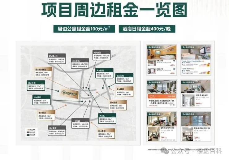 项目周边公寓租金基本约2500元/月,住宅2房租金约5000元左右,酒店租金约400元/晚起步,已进驻本案北区C栋 丽呈铂锐酒店目前租金区间约450-660元/晚;成熟的配套,庞大的人流加持,片区租金居高不下,产品是时下工薪人群最青睐的品质社区,对租房群体来说无疑就是一个理想居所。