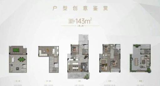楼栋结构方面,整体规划4栋9—17层小高层住宅与18栋4—6层叠院式洋房产品。产品户型均为约143平方米的大平层或叠墅体系,其中小高层采用两梯两户叠院采用专梯专户形式,具备较强的私密性与空间独立性。