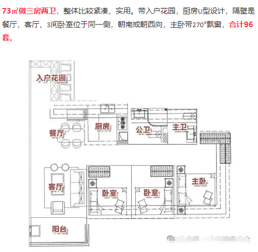 产品力精准匹配市场:73㎡三房两卫+110%+使用率,刚需上车利器;