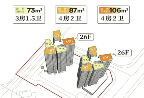 项目占地面积约9007㎡,容积率不高于3.0,建筑限高80米,总建筑面积不超过23523㎡。规划为2栋26层住宅楼,采用两梯五户设计,预计总货量约250套,整体开发节奏快、去化效率高,符合当前市场对“小而精”项目的偏好。