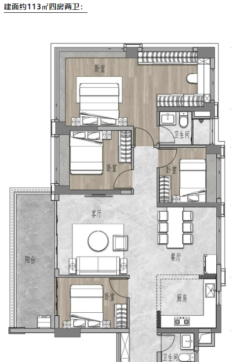建面约 69㎡三房一卫户型,公区南北对流,次卧可打通形成阔绰方厅,主卧三面飘窗可打造大衣柜。85㎡三房两卫竖厅格局,客厅可改造为约 6 米开间大方厅,采光充足,主卧同样三面飘窗并配备套间。113㎡四房两卫户型,客厅联通约 6.5 米宽南向阳台,主卧有独立衣帽间、梳妆台,空间感十足。且项目作为白鹅潭江景房里的小户型新规产品,得房率超 100% ,颇具竞争力。