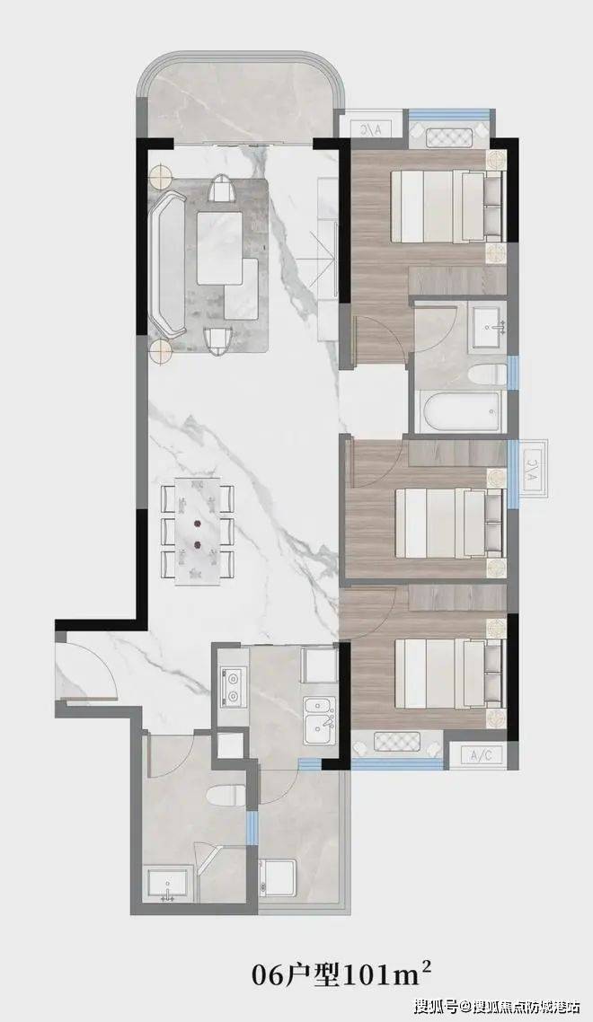 户型设计:78-143㎡三至四房,南北通透,得房率超82%;