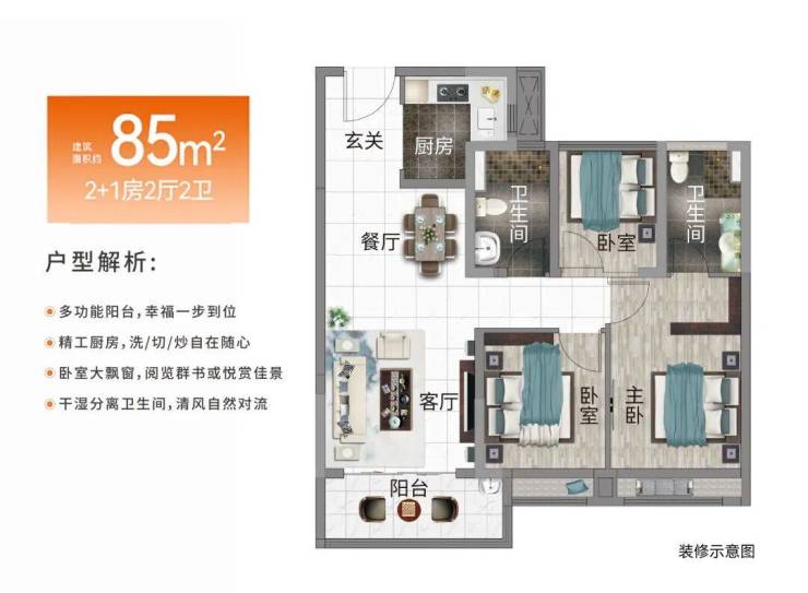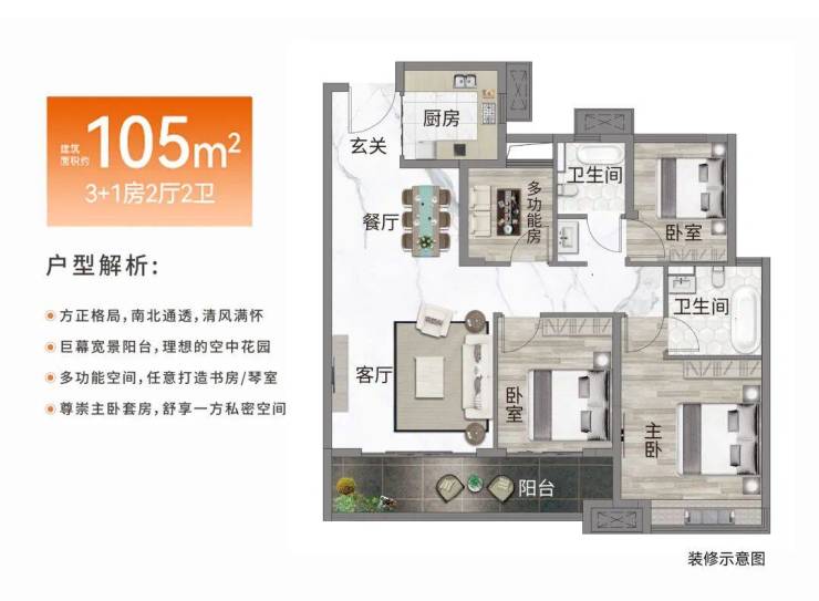 灯湖首府户型面积约85至105平方米,全南向设计,空间布局合理。85平方米户型为“2+1”格局,功能灵活,可满足三口之家舒适生活。105平方米户型为“3+1”四房设计,适应三胎及多代同堂家庭需求,6.8米景观阳台连接客厅与次卧,采光充足视野开阔。所有户型均赠送多功能房,实现居住空间最大化利用,兼顾私密与互动。