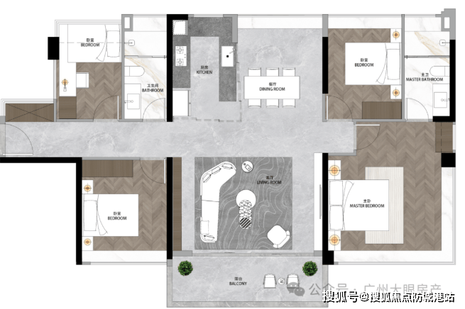 208㎡ 4房2厅3卫:近85平方米高定社交场,南北双阳台,格局方正无过道面积浪费。
