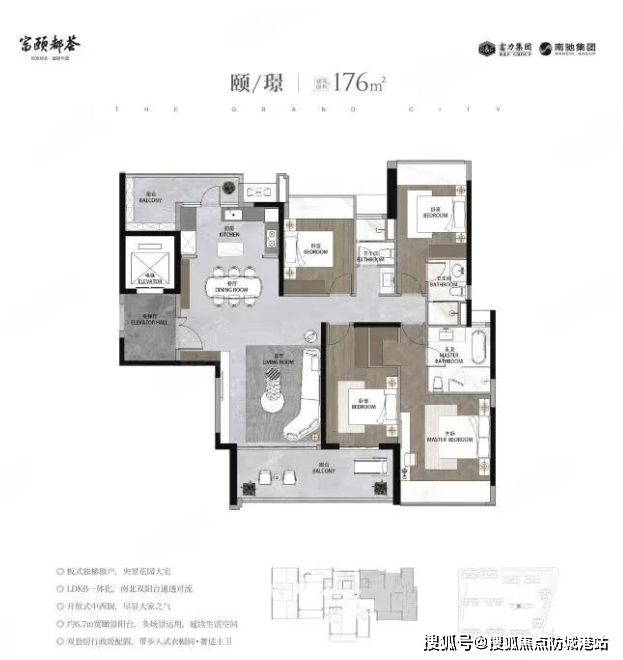151㎡ 4房2厅2卫:板式独梯独户,央景花园大宅,配备约7.5米长*2米宽奢华阳台。