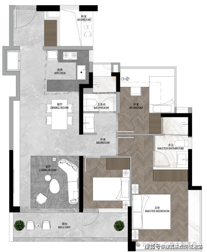 118㎡ 3+1房2厅2卫:四开间朝南,约6.6米宽景阳台,主卧套间超过22平方米。