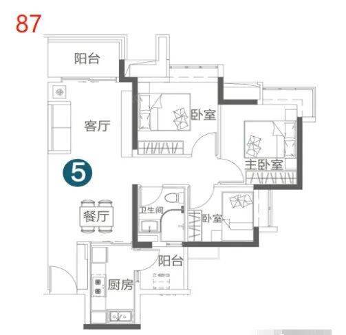 85㎡两房:适合首次置业的年轻人或小家庭,布局紧凑但功能齐全。
