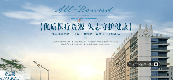 社区内配备了三甲级广医二院番禺院区,这是一所高水平的医疗机构,能够为居民提供全面优质的医疗服务。此外,还有一家中西医结合医院正在规划之中,未来将进一步提升该地区的医疗卫生服务水平。