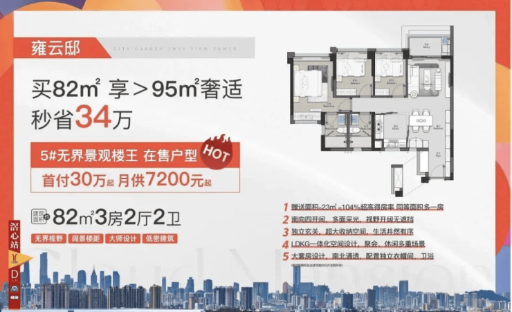项目在户型、景观、社区配套和物业管理上均采用高标准执行:户型超100%使用率、低容积率2.72、35%绿化率以及泛会所、体育中心等高端设施,为白云湖板块提供全新标杆住宅。央企联合打造加上板块稀缺地块,确保雍云邸成为白云湖最具价值的住宅之一。