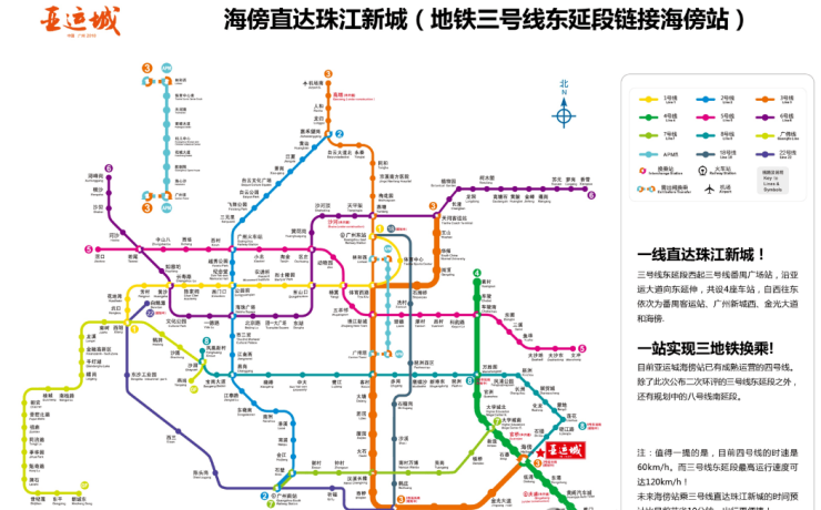 地铁网络:项目周边规划有三条地铁线交汇,分别是3号线、4号线和8号线。其中,4号线已开通运营,最近的是海傍站,从这里6站可达琶洲,7站可直达天河。此外,3号线东延段也设有海傍站,始发站直达珠江新城,4站即可到达番禺广场TOD,5站抵达南村万博CBD,方便快捷地连接广州各大核心区域。