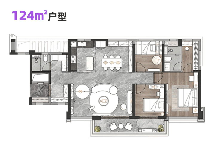143平不超豪宅面积设计,有点类似双龙抱珠户型,入户小玄关,有一个隐藏式空间,可以放一些衣帽鞋子。大厨房设计非常出彩,长岛台与餐桌配合,视觉效果非常显开阔。8米长的L型阳台也是加分项,主套有衣帽间设计,带来酒店套房体验。