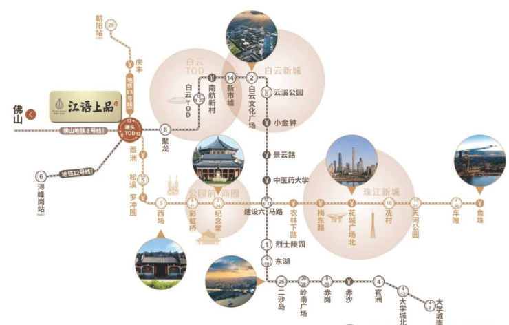 三线交汇:槎头站作为12号线、13号线和佛山8号线(规划中)的换乘站,提供了便捷的轨道交通网络,可直达荔湾、越秀、天河等核心区域。