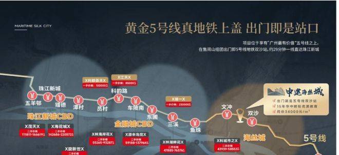 地铁:紧邻5号线双沙站(首期组团“阅山”距地铁口仅50米)、13号线双岗站(约800米),2站到鱼珠第二CBD,5站直达珠江新城,6站到琶洲,通勤效率远超同价位板块。