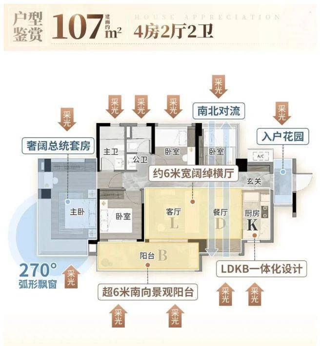 结构:横厅设计,南北通透,超6米双面宽景阳台。