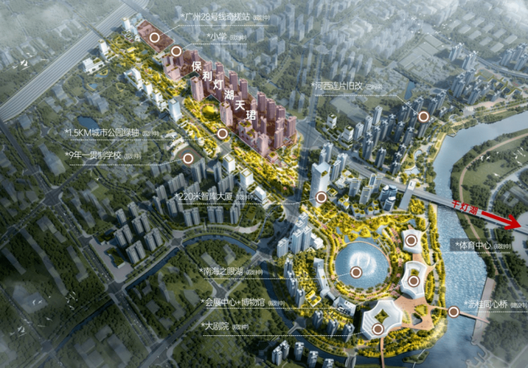 项目一路之隔为南海艺术中心,隔佛山水道对望千灯湖,距广州荔湾仅需20分钟车程。规划中的广州地铁28号线奇槎站、佛山地铁6号线(岭南路与穗盐西路交汇处)均在项目辐射范围内,未来轨道交通完善后,通勤效率将大幅提升。