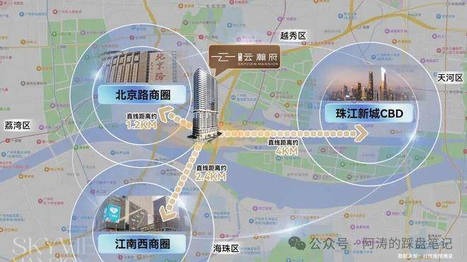 商业配套同样不用担心。400米就是江湾新天地,日常购物餐饮很近;900米左右到中华广场和北京路步行街,传统商圈的烟火气和时尚感兼得。往东可以快速连接珠江新城,往西直达江南西,位置正好卡在几个核心商圈的交汇点,生活半径很小,下楼一公里内基本能满足所有日常需求。