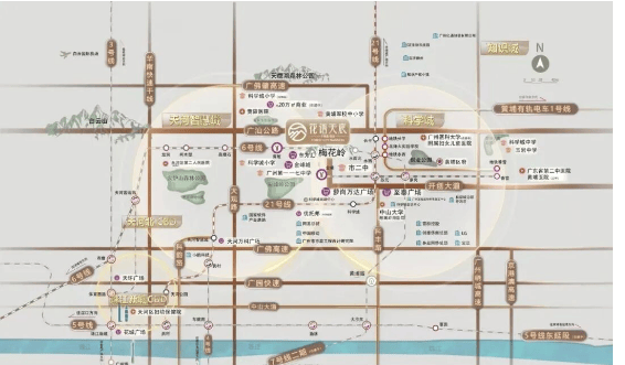 医疗与生态资源同样亮眼,周边 3 公里范围内有中山大学附属第三医院岭南医院、广州医科大学附属妇女儿童医院等优质医疗资源,为业主健康保驾护航;项目紧邻约 3 万方梅花岭,距离仅 20 米,是黄陂板块唯一全南向山景小区,内部还打造约 3.1 万㎡循山森氧生态园林,搭配图书馆、文化室、居民健身场所等休闲设施,居住环境舒适。