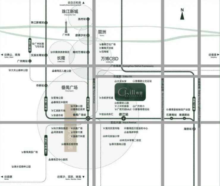 从傍江站出发,生活的半径被无限延展。仅需乘坐1站地铁,即可直达番禺广场枢纽站。番禺广场作为广州南部的超级交通枢纽,实现了3号线、18号线、22号线的无缝换乘。这三条线路堪称广州的“黄金动脉”,其中3号线串联起天河体育中心、珠江新城等核心商务区;18号线作为时速高达160公里的快线,被誉为“地下高铁”,极大地缩短了南沙与市中心的时间距离;22号线则进一步增强了番禺与广州南站及未来深圳方向的联系。对于在天河CBD、海珠琶洲核心区上班的精英人群来说,保利琅誉提供的通勤方案堪称完美。早上出门,步行至地铁站,短短几站即可抵达公司楼下,彻底告别了早晚高峰堵车的焦虑。数据显示,从项目出发,2站即可到达珠江新城,4站直达琶洲会展中心,这种“职住平衡”的极致体验,在广州市中心的房价体系下,往往意味着高昂的成本,而保利琅誉却以亲民的价格将其变为现实。