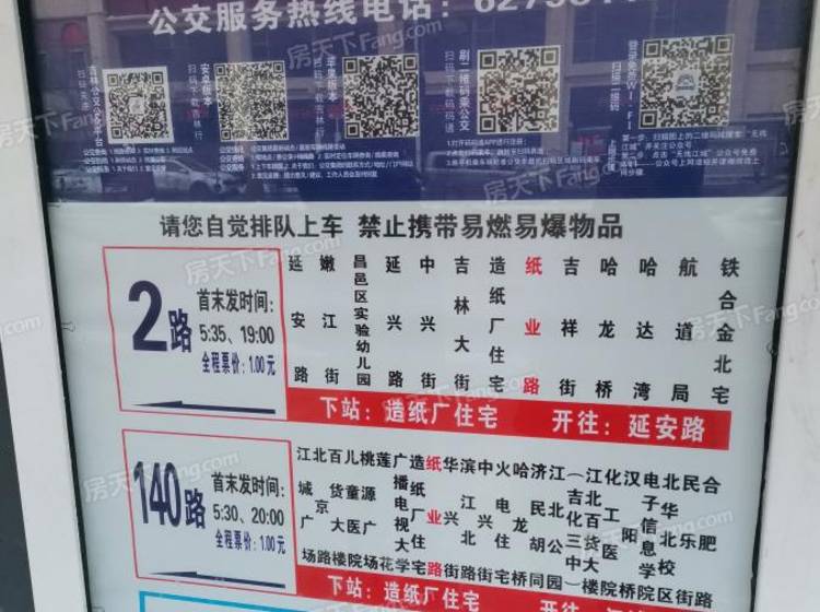 华兴街(公交站):10路;14路;29路;35路;38路;140路;214路;329路;华兴路(公交站):10路;吉林大街(公交站):210路;松江北路(公交站):4路;10路;14路;29路;35路;38路;40路;112路;210路;214路;218路;万达广场北门(公交站):2路;10路;14路;29路;35路;38路;214路;329路;昌邑区政府(公交站):4路;10路;14路;29路;30路;35路;38路;40路;130路;210路;214路;218路;329路;万达广场(公交站):2路;130路区间;140路;218路;造纸厂(公交站):2路;30路;40路;62路;102路;130路;130路区间;140路;203路;218路;通潭西区(公交站):112路;218路;林荫路(公交站):58路;
