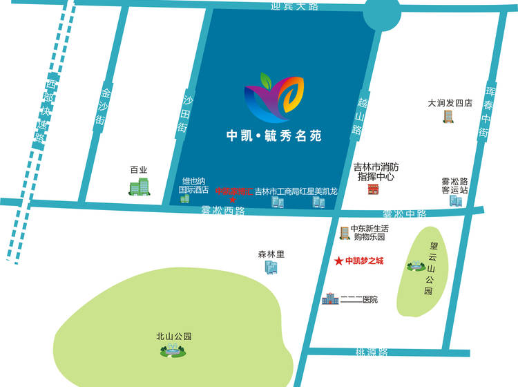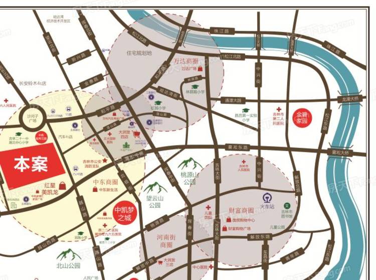 项目位于船营区东临越山路、西临沙田街、北临晓光路、南侧紧邻红星美凯龙生活馆。北向距离长吉高速出口约2公里,南向距离解放西路吉草高速出入口约4公里,距中东新生活仅1公里,到市中心大东门约4公里,地理位置优越,出入交通十分便利;项目以西,目前正在施工建设市政府重点工程“西部快速路”正在加紧施工建设,从秀水大街途径雾凇西路直达市一种、温德桥。建成后周边路网将更加完善便捷。