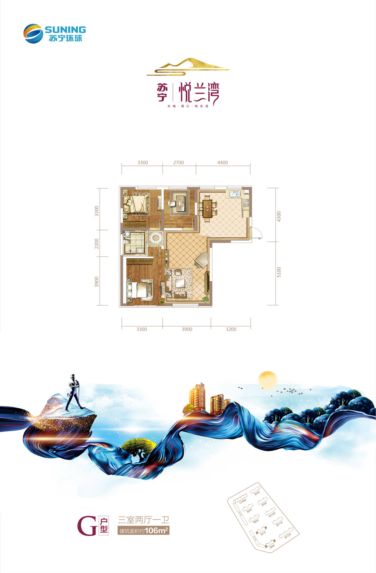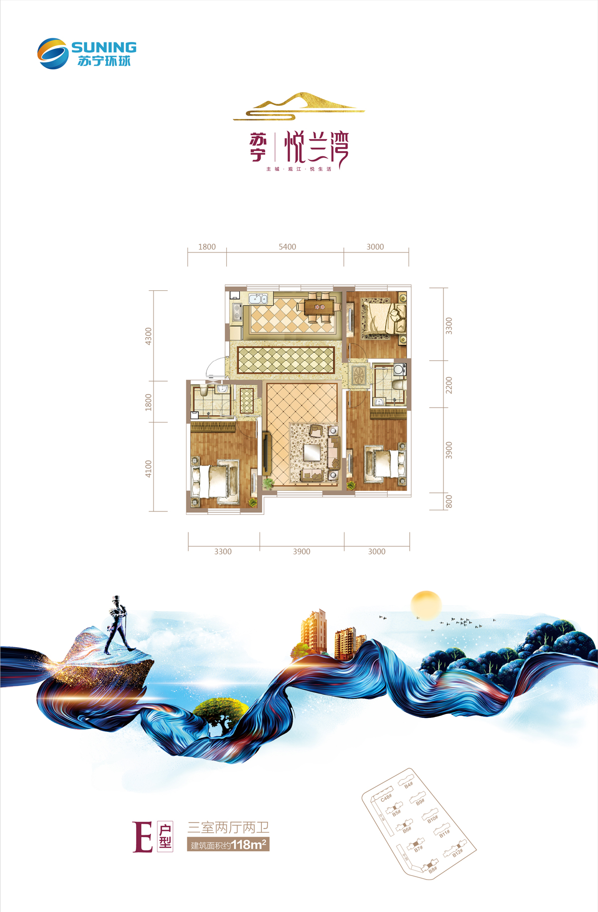 苏宁·悦兰湾是苏宁环球集团继苏宁·天润城、苏宁·绿谷庄园后,以在吉林10年地产开发经验,经过时间的沉淀,深入了解与探索,打造的高端居社区。项目整体规划10栋小高层,占地面积约5.2万㎡,建筑面积约10.8万㎡。产品建筑面积区间约67-320㎡,户型从布局精巧的一室一厅到观江精品四室两厅,满足多种居住需求,值得珍藏传承。