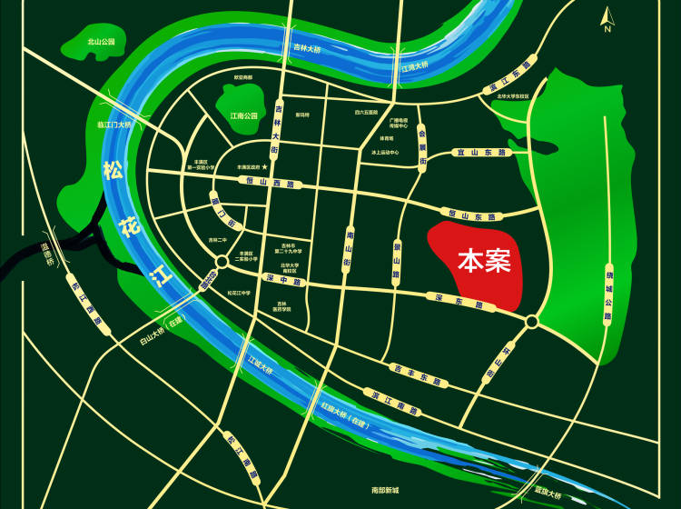 通配套:项目南侧为深圳东街,直接连接吉林大街、吉丰东路、南山街等,交通顺畅,可快速到达市中心区域及松花湖景区。周边包含60路、52路、66路等公交线路,直接通往市图书馆、火车站、江南公园等城市各大主要区域。