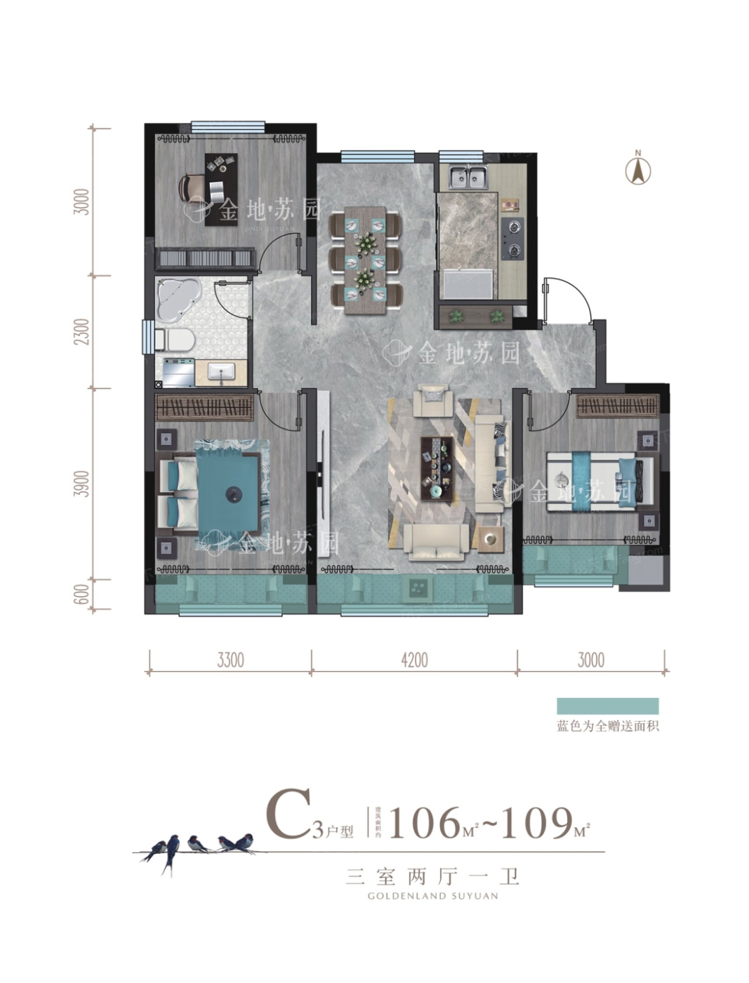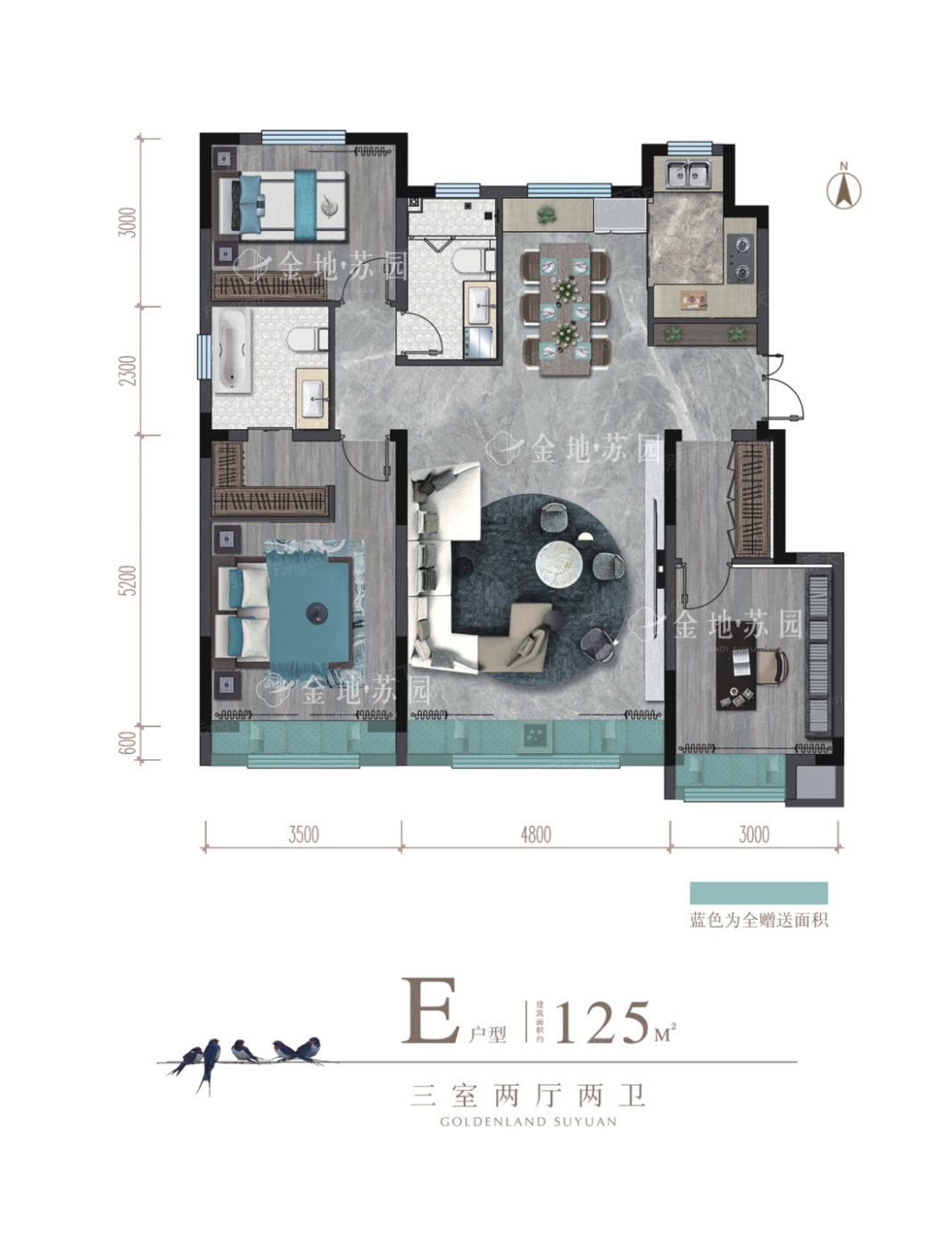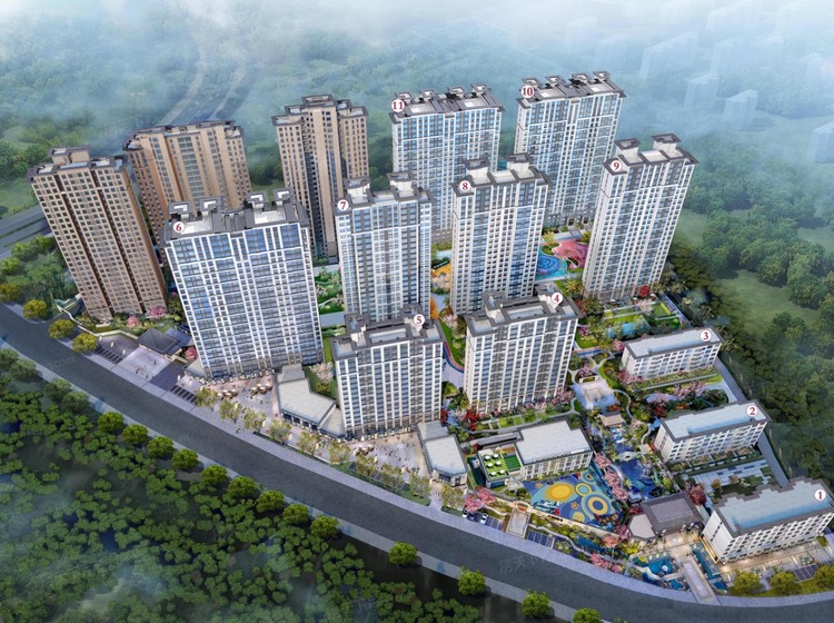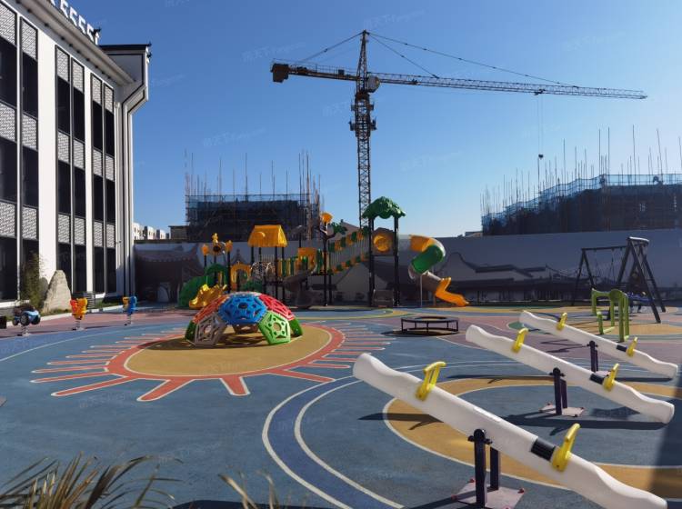 园区一轴五进打造新中式苏杭园林,共设有2组瀑布水系和儿童游乐区,以及夜光健身跑道