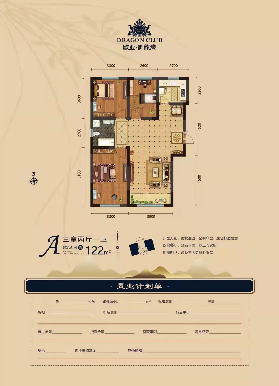 3室2厅1卫-122㎡